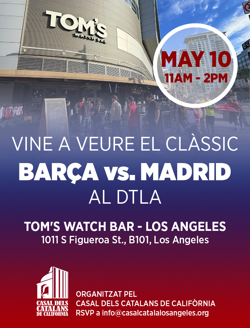 UNEIX-TE AL CASAL | JOIN THE CASAL SANT JORDI Apr 7, 2026 | 2026 CAMINADA EN GRUP Feb 26, 2026 | 2026 DIA DE LA DONA Feb 15, 2026 | 2026 SAVE THE DATE Feb 8, 2026 | 2026 DINAR DE NADAL Nov 17, 2025 | 2025 HOMENATGE A MARGARITA XIRGU Nov 6, 2025 | 2025 SAVE THE DATE Nov 6, 2025 | 2025 LA DIADA A LOS ANGELES Aug 30, 2025 | 2025 « Older Entries